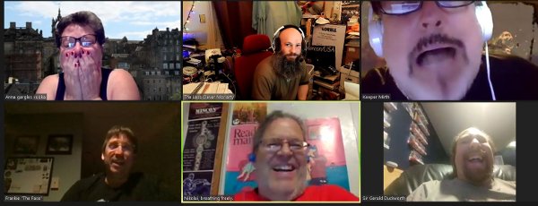 We talk a bit about how the Dwarf and Sorceress are working together and laugh at how we seem to always need to risk terrible death to avoid risking terrible death. Terrible insanity being obligatory. We have a drink to Ginger. Anna seems to be wearing Ginger's Ankh. Interesting.