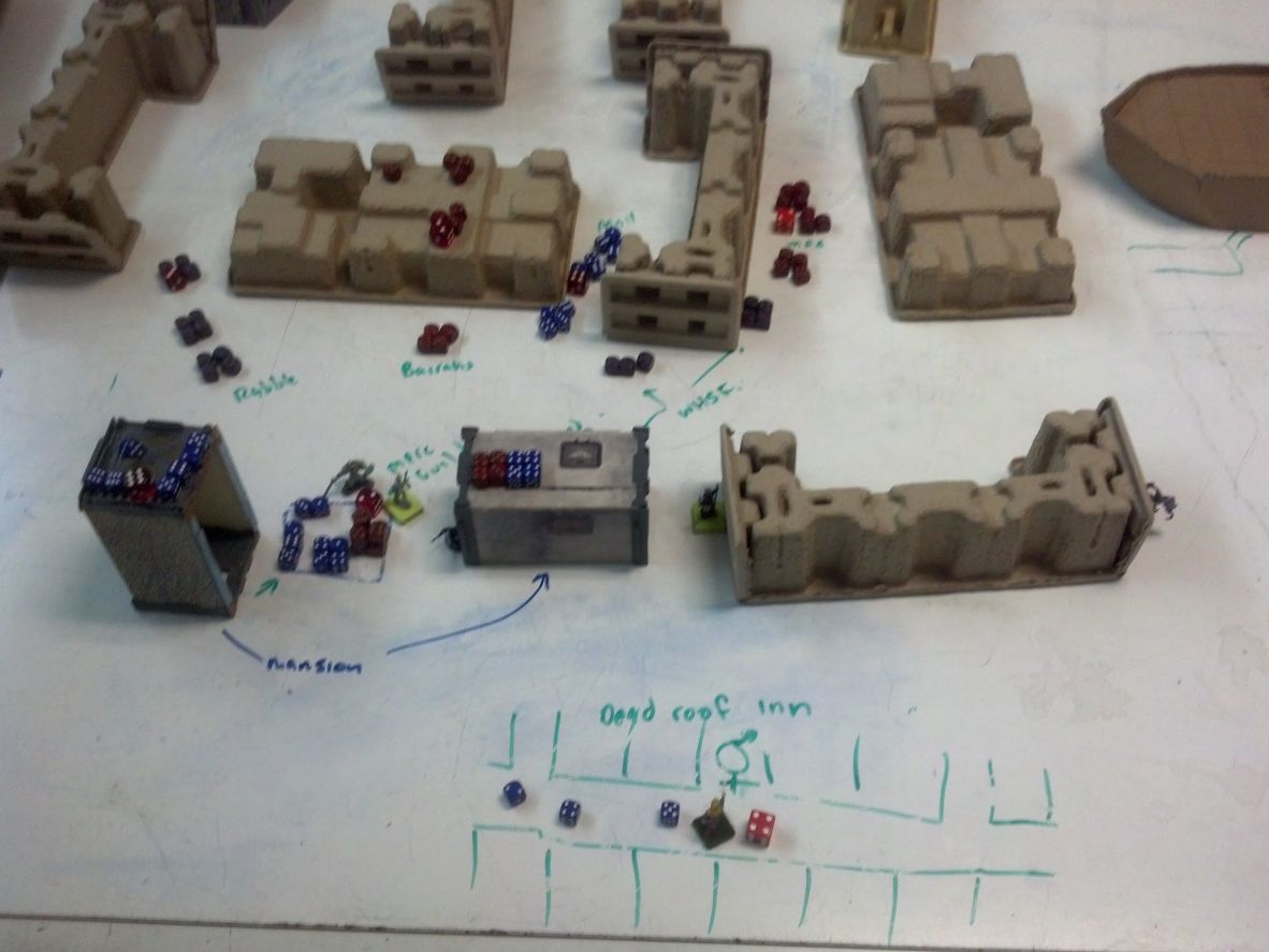 More photos were taken of the tabletop to facilitate set up for next week and we called it a night. May be seen as attachments. Dice are Gargoyles, red dice are Gargoiyle Lords. Figures are characters.