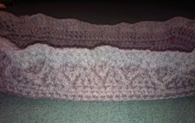Major Bob's scarf is chugging along , as well as Daisy's. With the weather warming up and the snow melting I am much less inclined to want to make winter accessories so their progress has slowed considerably.