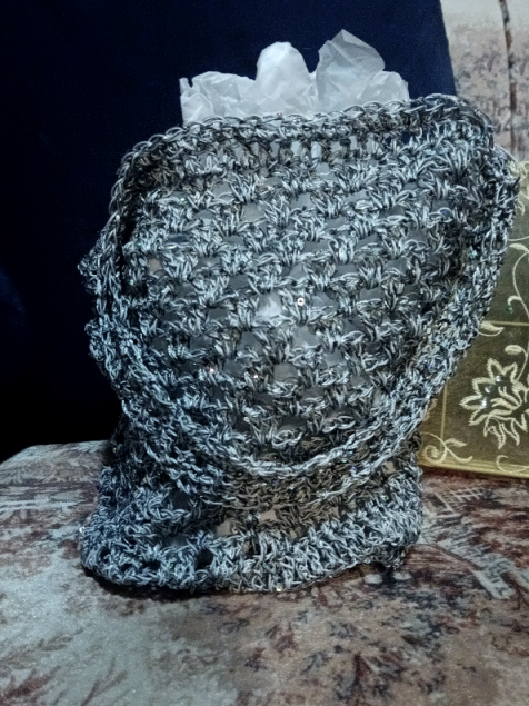 Colours:I used a silver cotton thread and a sequined black and silver yarn.